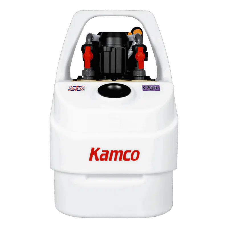 O CF210 aceita desincrustantes químicos ácidos, alcalinos e à base de cloro, e pode ser usado para enchimento com glicol. Possui uma válvula de troca rápida, conexões de nível industrial e mangueiras reforçadas com diâmetro maior, garantindo uma limpeza eficaz sem a necessidade de desmontar radiadores ou caldeiras.